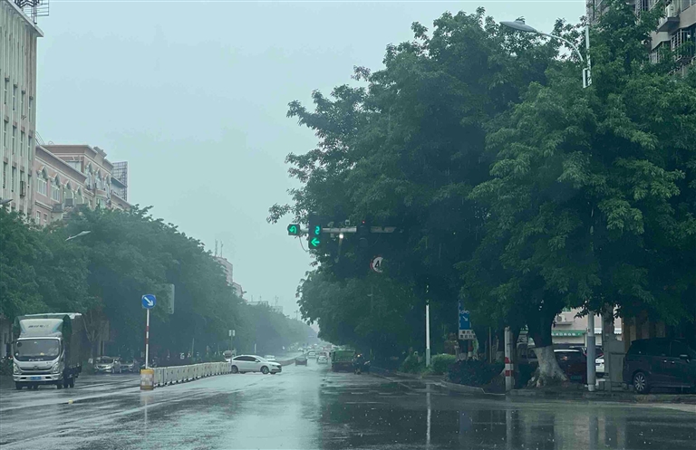 记者第一时间赶到现场看到,从该路口往濠江路方向的红绿灯与附近一棵行道树的枝干几乎平行,树枝树叶随风摇曳,不时遮挡红绿灯,使得交通信号难以被清晰识别。市园林环卫中心在接到热线反馈后迅速行动,组织工作人员赶赴现场修剪。工人们使用专业工具对路口周边的行道树枝叶进行全方位修剪。经过修剪,不仅道路视野更通透,红绿灯和交通标志也恢复了清晰可见的面貌。