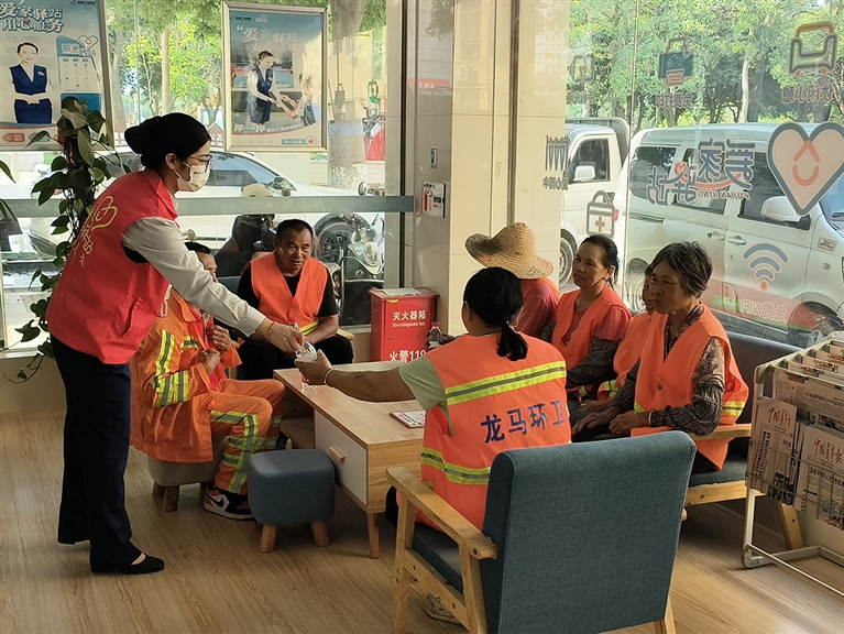 本报讯 5月6日下午,石狮广电网络公司以“爱家驿站”便民服务站点为载体,在宝湖营业厅“工会驿站”开展“致敬劳动者·驿站在身边”活动,向炎炎烈日下辛勤工作的户外一线劳动者送上清凉和关爱。