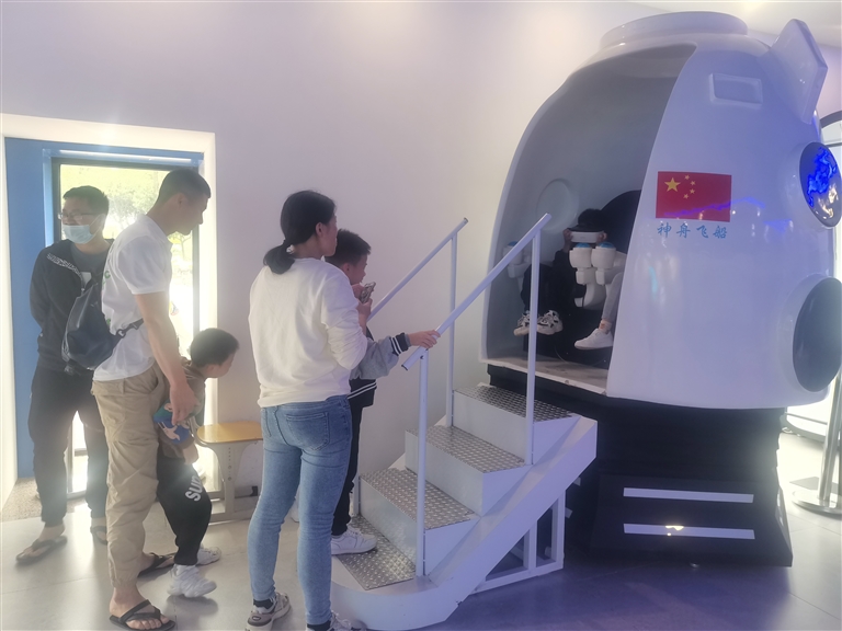 在石狮市科普馆里,很多小学生在爸爸妈妈的带领下,体验着馆里的每一个项目,玩得不亦乐乎。该馆有天宫启航体验、神舟飞船、地震体验室等20多个项目。据科普馆工人员介绍,节假日里,许多家长都会带孩子来科普馆体验。