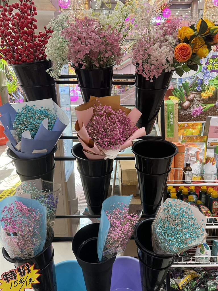 线下花店同样“订单火爆”。笔者在八七路的一家花店内看到,满天星花束备受欢迎,有的花色已经销售一空。“最近鲜花预订量很大,一些老顾客几天前就从微信上预订,通过外卖平台下单的顾客也有不少。”店主介绍道。还有一些花店推出绣球、月季、栀子花等简单好养的盆栽作为“母亲节特供”,满足部分老年女性群体对实用性的需求。
