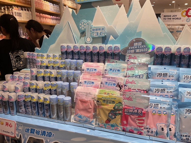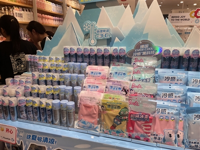 进入夏天,市面上各类降温、消暑“神器”陆续登场。笔者在商场某日用品连锁店看到,店里的显眼位置摆满了凉感喷雾、冷感湿巾等产品,以及手持风扇、降暑冰圈等夏季“降温神器”。