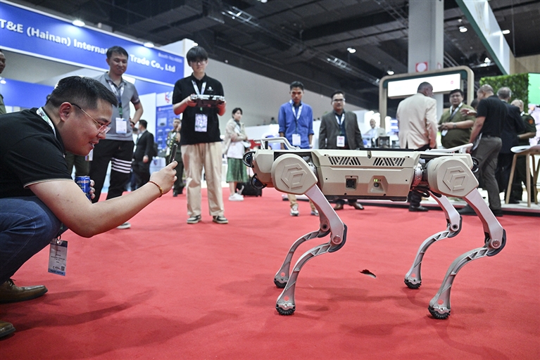 5月7日,在马来西亚吉隆坡,参观者在防务展上拍摄中国军工企业的展品。5月6日,第18届马来西亚亚洲防务展在吉隆坡开幕。本次展会为期4天,吸引包括中国在内的60个国家及地区的超过1000家企业参展。(新华)