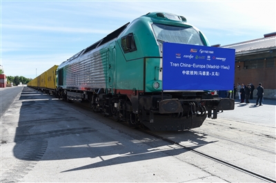 5月8日,中欧班列(义乌—马德里)开行十周年纪念号班列发车仪式在西班牙首都马德里举行,百余名嘉宾参加发车仪式并参观班列开行十周年成果展。该纪念号班列8日从马德里鸣笛发车,驶往中国义乌。(新华)