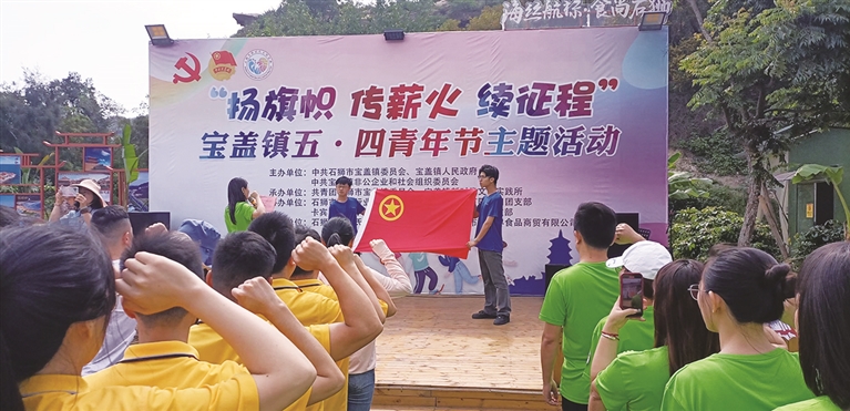 本报讯 “我志愿加入中国共产主义青年团,坚决拥护中国共产党的领导……”5月9日上午,宝盖山下传来响亮的宣誓声。正在重温入团誓词的就是来自宝盖镇机关、各村(社区)和部分非公企业、“两新”组织的百余名青年代表。当天,“扬旗帜 传薪火 续征程”宝盖镇五四青年节主题活动在这里举行。