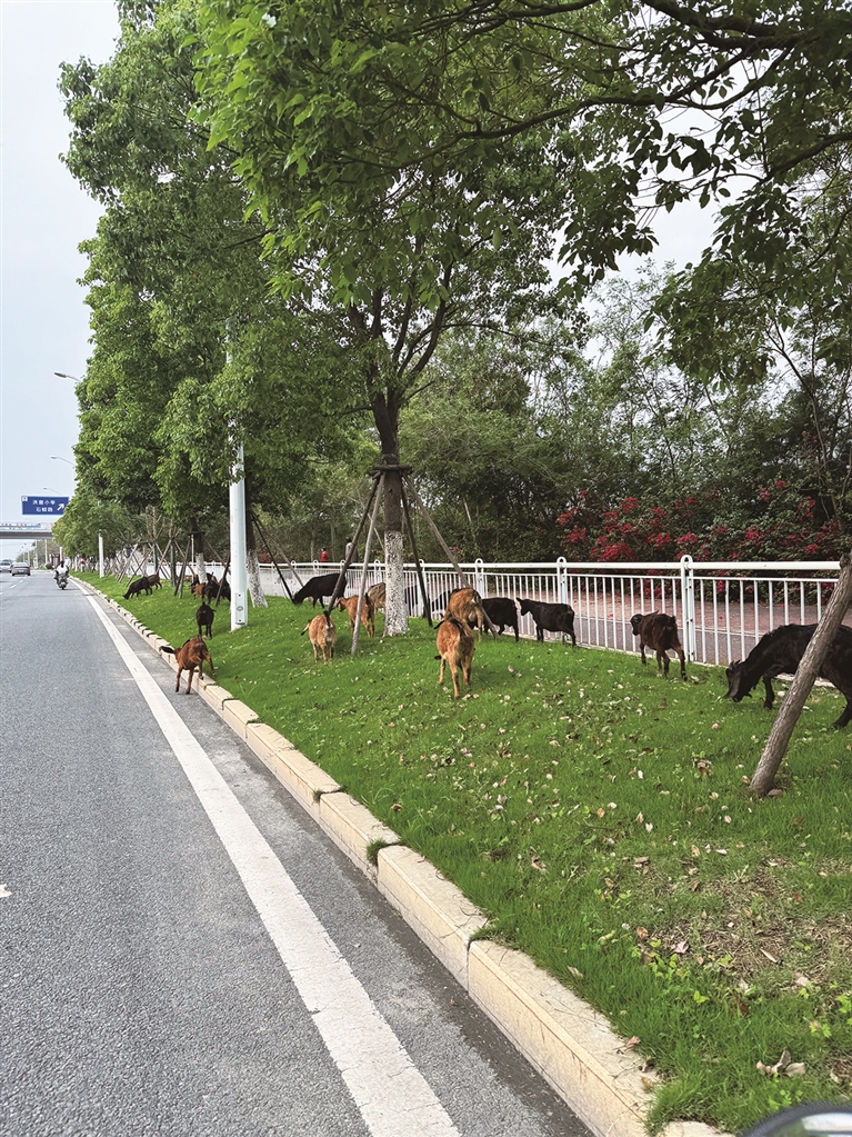 绿化带既能滞留浮尘,吸收有害气体,又能释放氧气、净化环境,也是一个城市精神文明和生态文明程度的象征。笔者近日经过濠江路时却看到有人在一旁的绿化带上放羊,任羊群啃食绿化带。(施秋凉)