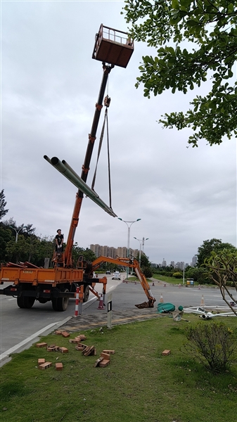 由于这根路灯杆已经无法再使用,而定做新路灯杆需要一段时间,工作人员提醒市民朋友,经过这里时注意减速慢行,确保交通安全。