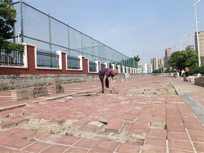 国投集团城市资源经营公司相关负责人介绍,因为空间相对敞阔,这一透水砖人行道一直以来都是家长接送学生上下学的主要临时停车区。然而,因为日常车流量较大,加上附近一些小区居民平时将私家车随意在此停放,导致路面砖块因承重不足出现损坏、凹陷,不仅影响出行舒适性,也存在一定安全隐患,同时还影响家长日常临停,学校师生和家长多次通过12345便民热线反映该问题。