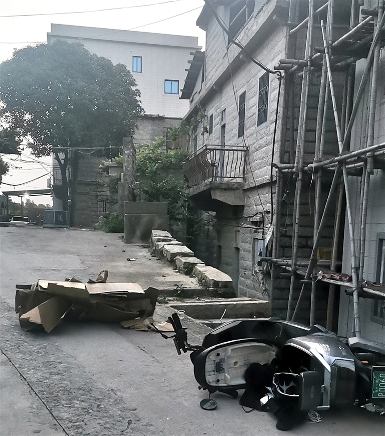 “我侄子连人带车被楼上掉下的纸皮砸中,人受伤,晕过去了……”事发地在蚶江一在建民房外围村道上,该村道是很多村民和车辆必经之路。出警民警了解到,5月10日,村民胡某在该民房三楼收拾了一些纸皮准备拿去贩卖,由于民房外围搭着竹架子,且这些纸皮体积比较大,如果要从竹架上拿下来比较麻烦。为图省事,胡某将这十来斤的纸皮直接丢至楼下!不料竟砸到骑车路过的许某,导致许某受伤且当场昏迷。