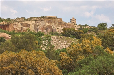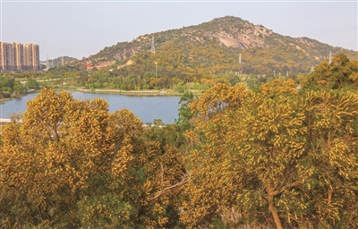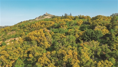 “红豆生南国,此物最相思”,古时的红豆并不是豆科乔木属相思树上的果实。古典诗词提及的“相思树”或与当今的树种也不同。宝盖山的这些相思树,别名台湾相思树,又名台湾柳、相思仔、相思子、洋桂花。其树形宽大,枝干张扬,既抗风又耐旱,一直是荒山造林绿化、水土保持和沿海防护林的重要品种。值得一提的是,相思树的花小,金黄色,有微香;轻轻一碰或风吹枝动,花粉便纷纷掉落,落得遍地“黄金”。