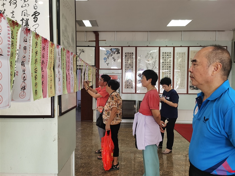 本报讯 6月28日上午,石狮市老干部活动中心一楼大厅挂满了五颜六色的谜条,其谜语内容包含了移风易俗、党史人物、时政新词、人名地名等题材,吸引不少老干部加入猜灯谜活动。