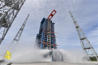 6月30日在海南商业航天发射场一号发射工位拍摄的喷水试验。当日,位于海南自贸港重点园区——文昌国际航天城的海南商业航天发射场开展双发射工位合练,为即将到来的首次发射任务做准备。该发射场是我国首个商业航天发射场,由海南国际商业航天发射有限公司投建,致力于打造国际一流、市场化运营的航天发射场,进一步提升我国商业运载火箭发射能力。(新华)