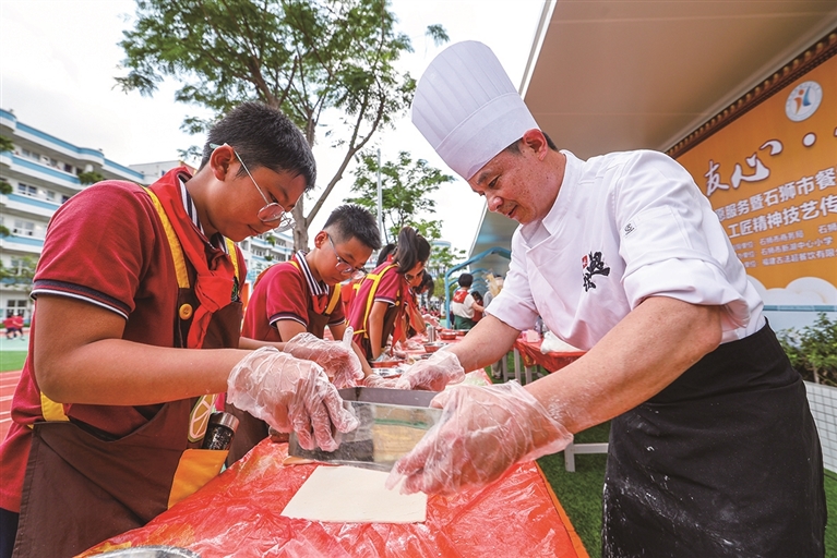 6月25日,石狮市餐饮烹饪行业协会、石狮市新湖中心小学联合举办餐饮志愿服务暨餐饮烹饪行业工匠精神技艺传承实践活动,以此传承闽菜技艺和工匠精神。