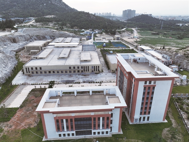 6月27日,记者从高处看,位于蚶江镇溪前村石锦路南侧的“石狮肉品加工厂”项目待宰车间、屠宰车间、检验楼、冷冻库、宿舍楼等建筑主体外墙装修完工,外立面颇为壮观。随着厂区园林绿化及配套景观工程完成,一个现代化、标准化的肉品加工基地高颜值呈现。目前,屠宰车间的流水线上自动屠宰设备进入调试阶段。(记者 兰良增 李荣鑫)
