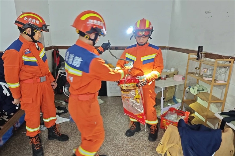 消防员到场后通过侦查发现,一条蛇躲在店铺仓库杂货角落。了解情况后,消防员穿戴好个人防护装备,慢慢挪开杂货,发现蛇后,再利用捕蛇器进行抓捕,随后装入编织袋带到野外放生。