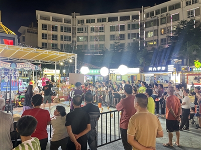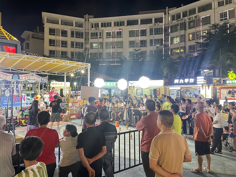 直播过程中,主播会与观众进行实时互动,回答观众的问题,并引导他们参与购买,或是通过和现场围观的市民进行互动,让他们通过参加挑战等形式赢得奖品。这种互动式购物方式,不仅增加了购物的乐趣,也让市民感受到更加便捷的购物体验。市民施女士表示,虽然自己经常在直播间购物,但家门口这种“现场”直播的形式,她还是第一次参与。