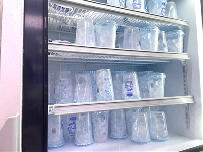 前来便利店购买冰杯的市民邱女士说:“DIY过饮品的都知道,自家冰箱冻的冰块融化速度特别快,还没喝几口就全部化成水了,严重稀释饮品原本的味道。而食用冰杯里的冰块化得慢,出门在外时可以用来泡茶或者加入咖啡,十分方便。”市民吴先生也说道:“我有中午饭后喝咖啡的习惯,买杯星巴克咖啡需要30多元,而现在花3.5元买杯冰杯,回到办公室就可以自己用咖啡机做一杯冰美式,大大节省了开支。”