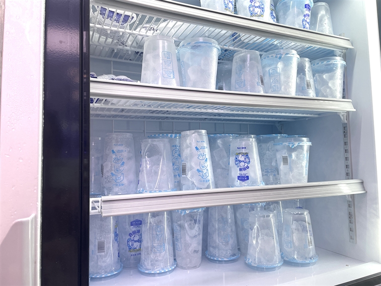 笔者走访了石狮几家连锁便利店,发现普通冰杯的价格在3.5元左右一杯, 冰球杯8元左右,食用袋冰2.5元左右一袋。“冰杯不仅可以单独使用,还能与各种饮品搭配,不少消费者都会购买茶饮料、乳饮料或者茶饮料、水果汁之类的组合,自己进行搭配制作饮品。”某连锁便利店店员表示,高温天气助推冰杯成为畅销品。