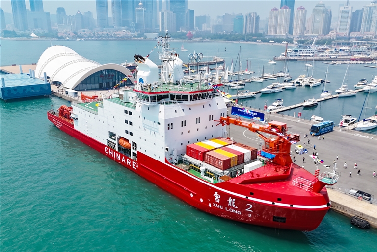 “雪龙2”号和“极地”号破冰船亮相青岛向公众开放参观