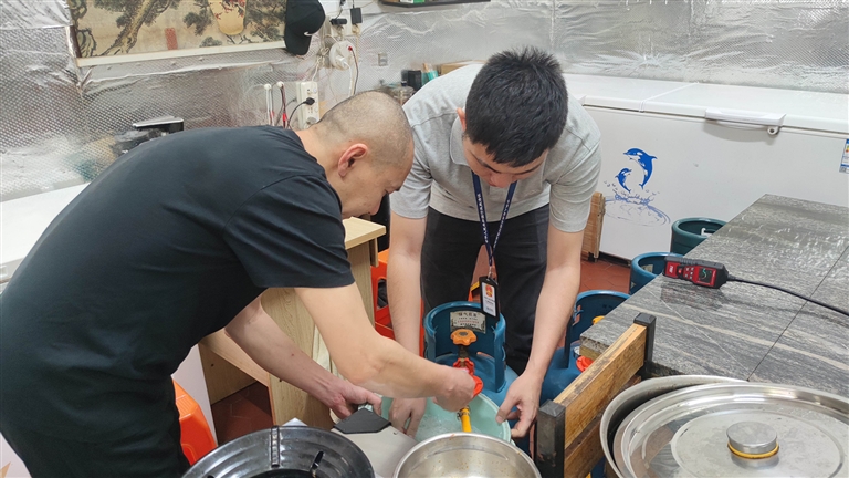 检查人员现场重点对餐饮场所灶具是否具有熄火保护装置、软管是否为金属安全软管、接口是否有泄漏、是否安装报警器、熄火保护装置、安全检查公示牌设置是否按期巡检等情况进行逐项排查,对于发现的隐患问题登记造册,跟踪督促供气单位配合餐饮用户能整改的立即整改,第一时间无法解决的限期整改,当日6家餐饮场所现场整改安全隐患问题,另9家存在安全隐患的餐饮场所被要求限期整改。
