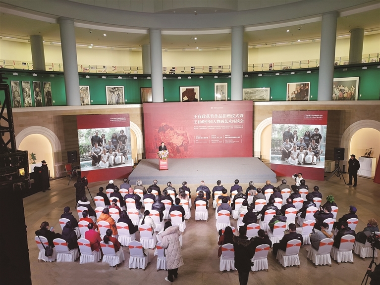 2024年1月23日,陕西省美术博物馆里,灯光璀璨,嘉宾云集。王有政获奖作品捐赠仪式暨王有政中国人物画艺术座谈会正在这里举行。