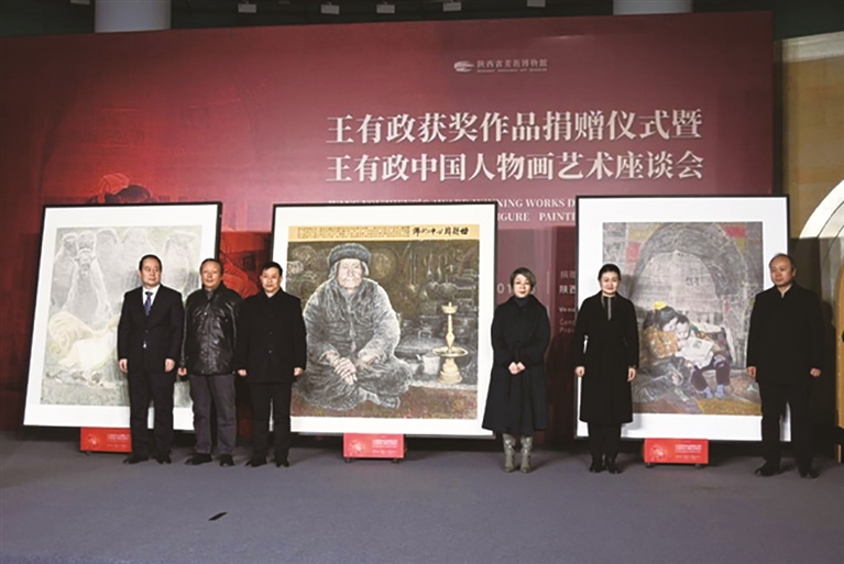 著名中国人物画家王有政向陕西省美术博物馆无偿捐赠三件全国美展获奖作品,分别是1989年获第七届全国美展铜奖的《倦旅图》(160×140cm)、1994年获第八届全国美展优秀作品奖的《母亲 我心中的佛》(170×170cm)和1999年获第九届全国美展铜奖的《读》(161×130cm)。而王有政先生并没有到场,他是委托自己的家属来完成这个心愿的。
