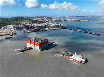 本报讯 日前,重达1.4万吨的“庞然大物”在5艘大马力拖轮的组合拖带下,缓缓驶出泉州船厂2号船坞。这是厦金大桥(厦门段)工程在泉州船厂建造的首个超大型锚碇钢沉井,单侧最大面积约8.4万平方米,超过200个标准篮球场的面积之和。作为厦金大桥承载桥体重量基础性关键海底构件,该锚碇钢沉井的完工和顺利出坞,标志着厦金大桥工程取得又一突破性进展。