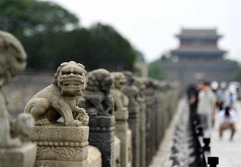 这是7月4日拍摄的卢沟桥上的石狮子。7月7日是“七七事变”87周年纪念日。87年前,“七七事变”在北京西南宛平城外的卢沟桥爆发,拉开了中华民族全面抗战的序幕。如今的卢沟桥旁高铁飞驰而过,宛平城内外鲜花娇艳,但宛平城墙上的弹痕依然触目惊心,时刻提醒着后人铭记历史、缅怀先烈、珍爱和平。(新华)