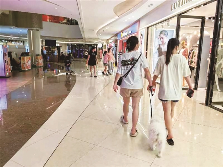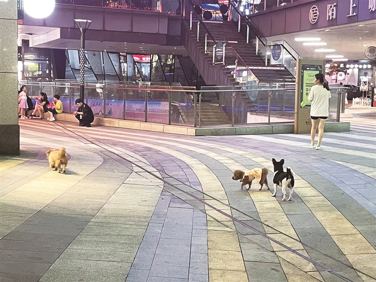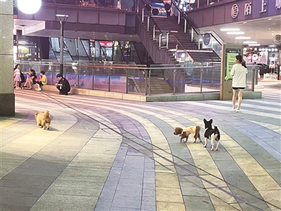 近日,记者在泰禾广场看到一幕,两位市民带着自己的宠物狗在一楼大厅闲逛,虽然那是一只小博美,但仍使得一些怕狗的市民纷纷避让。无独有偶,在峡谷旅游路学府公园,记者曾多次看到有未牵绳的狗在草坪上欢快地奔跑,其中不乏一些大型犬,如边牧、金毛等犬种。尽管这些大型犬普遍性情温顺,但由于没有牵引绳的束缚,在草坪上撒欢的它们还是显得“自由过头”了。一些路过的市民避之不及,一些锻炼的市民因跑步运动引发它们短暂“追逐”。