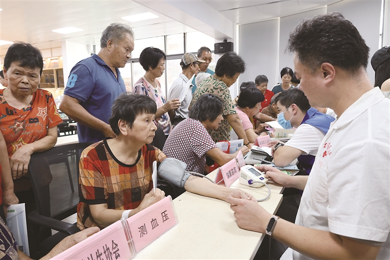 得益于国家基本公共卫生服务政策,全市65岁及以上老年人每年都能享受一次免费健康体检。近年来,市卫健局不断夯实基层网底,依托家庭医生签约服务,将医养结合触角延伸至各个村庄,创新推出“移动体检”服务,组织全市65支家庭医生团队下乡服务,现场体检,解读报告,即时处理健康问题,需要转诊的则通过绿色通道快速对接镇级或市级医院,让老年人“少跑一步”。截至2024年,全市65岁及以上老年人健康管理率达74.24%。