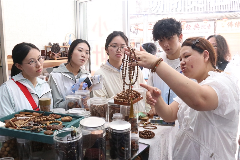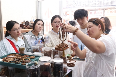 本报讯 近日,泉州海洋职业学院信息工程学院蓝帆“木语新说”实践队赴莆田开展“探寻木雕非遗瑰宝 守匠心传承千年技艺”三下乡活动。 实践队先后走访三福艺术馆、三福工艺园区及榜头工艺品一条街等当地知名木雕基地,了解古典家具的演变,并深入车间观看木雕制作流程,感受传统工艺与现代技术的融合。实践队队员与非遗传承人深入交流,探讨榫卯、雕刻等技艺,为古老技艺注入年轻智慧,共同探索产业发展新路径。 (记者 王文豪)
