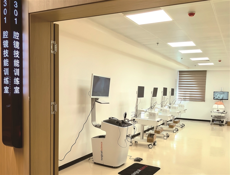今年5月,医院科研教学楼正式启用,软硬件设施设备齐全,成为孕育医学人才的重要基地。其中,位于三楼的临床技能培训中心,面积约2179平方米,设置客观结构化临床考试中心OSCE(10站),配备模拟手术室、模拟ICU、模拟产房、模拟临床思维诊疗室、模拟DSA微创手术训练室、内外妇儿、急救单项基础技能训练室等多种模拟教学场所,不仅为医院医务人员的培养提供完备的覆盖各大专业的单项临床技能操作培训,还可承担福建医科大学等高等院校临床各专业的教学任务、临床技能多站化考试辅导与考核任务等。