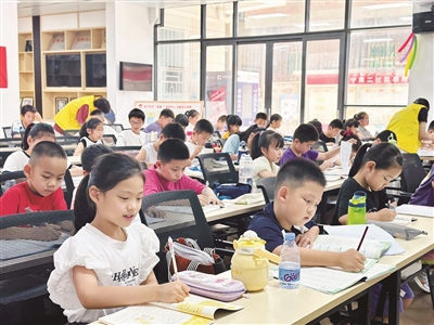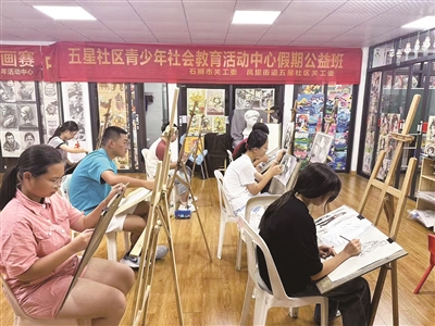 在简短的开班仪式后,学生们迎来开班“第一课”。石狮市关工委思政宣教组讲师、新四军研究会会员周国球为学生们上了一堂题为《弘扬铁军精神·争做时代新人——石狮籍新四军战士故事会》的爱国主义教育课。“在这里可以交到很多朋友,学习到很多新知识。”对于再次参加暑托班,老学员邓晨宇一脸兴奋。据悉,今年锦尚镇总工会整合资源开设4个职工子女暑托班,吸引了辖区129名职工子女参加,开课时间将持续至8月中旬。暑托班除了开设暑期安全托管、课业辅导外,还通过整合、联动、共享社会资源,提供绘画、手工制作、硬笔书法、科普、闽南文化体验、舞蹈在内的兴趣培养课程,促进职工子女全面发展、快乐成长。