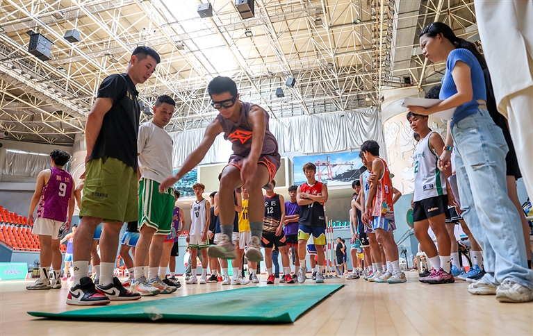 “我今年高中毕业,参加过全省的比赛。看到镇里选拔集训队,便报名参加。”家住塘边村的李镇宇身高1.95米,非常热爱篮球。他说,希望加入集训队,并借助这一平台提升自己。刚要上初一的胡铂承虽然只有14岁,但打篮球已经有8年了。“我从幼儿园中班就开始培训篮球了。”他说,希望长大后也能成为镇篮球队的一员。