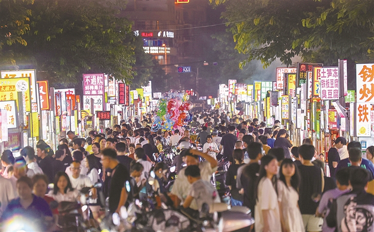 这里人群如潮水般涌动,欢声笑语不绝于耳。这里是美食的天堂,是城市烟火气的生动写照,每一处角落都洋溢着生活的热情与活力,展现出独属于夜市的繁华与魅力。(记者 颜华杰)