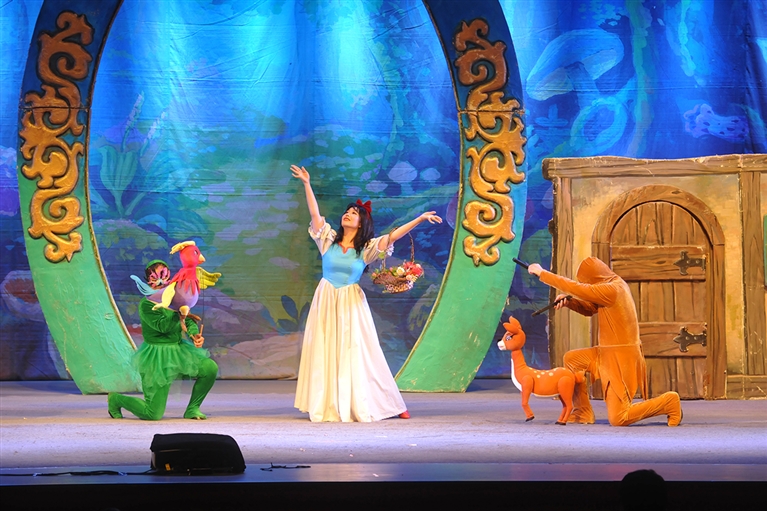 本次活动邀请江西儿童艺术剧院到场演绎经典故事。演出讲述被邪恶皇后追杀的白雪公主,在黑暗森林中得到七个小矮人的救助,小矮人们勇敢战胜恶毒皇后,并唤醒了白雪公主。