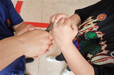 消防救援人员查看后发现,该女子左手无名指被戒指卡住,手指出现红肿,如果不及时摘除戒指,手指血液不流通可能会引起坏死。消防救援人员立刻取来工具,利用绝缘剪和老虎钳对戒指进行剪切。最终,在消防救援人员的协同配合下成功将该女子手上的戒指取下。