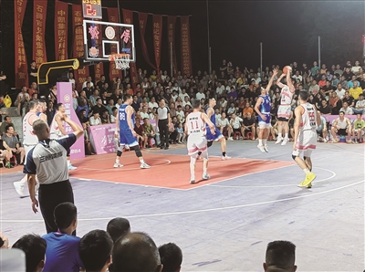 本报讯 7月29日晚,2025年“斗阵·泉BA”暨和美乡村篮球大赛在宝盖镇郑厝村灯光球场迎来八强赛。值得一提的是,在当晚第一场比赛中,石狮宝盖队以82:68淘汰晋江永和队,率先闯进四强。