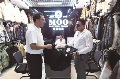 这间名为“MOO”的店铺里,其实是一个不足27平方米的档口,却陈列着1200余款棉服、冲锋衣、羽绒服、马甲系列服装样衣。“在这里,我们能把‘石狮优质好货’卖到利比亚、印度、伊拉克、也门等十几个国家,成为连接石狮与全球市场的‘跨国供应链’微型枢纽。”亨利用流利的中文说。
