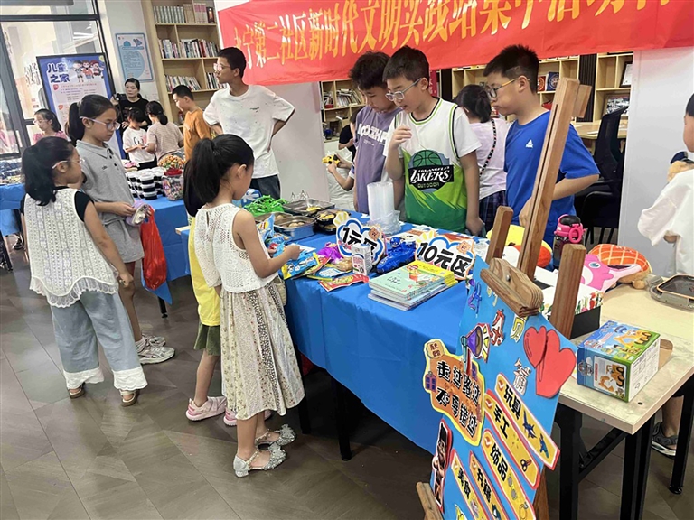 本报讯 8月1日,2025年永宁镇第二社区职工子女暑托班圆满画上句号。当天,一场充满童趣与温暖的义卖活动成为收官亮点,小朋友们纷纷拿出自己的玩具、书籍、小零食参与其中,最终筹得的1800元善款全部捐赠给鳌城康园食堂,用于老人助餐资金,以小小爱心传递大大温暖。