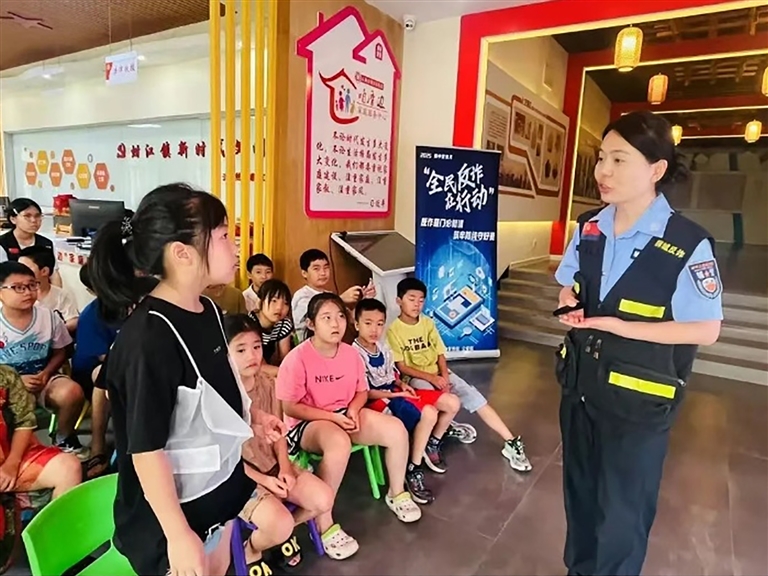 本报讯 7月29日,蚶江镇妇联联合石狮市公安局、蚶江镇总工会、“咱厝边”家庭服务中心、镇关工委、镇计生协会、锦江村青少年社会教育辅导站开展青少年反诈宣传活动。