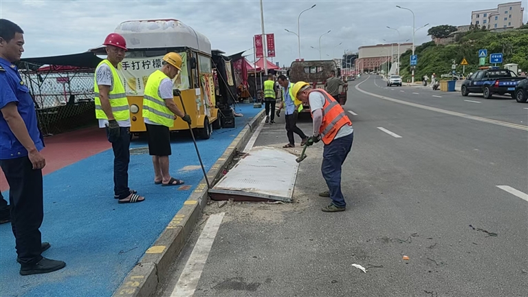 此次行动重点整治锦江外线、大厦村海岸带、“小威海”等游客密集的沿海网红打卡点。整治过程中,执法人员向摊贩宣传城市管理法律法规,引导商贩规范经营,对拒不整改的私设爬坡、遮阳棚等统一集中清理拆除,进一步提升市容景观。此次行动共清理私设爬坡6处,拆除影响市容景观的遮阳棚15处,规范摊点摆放10余处。