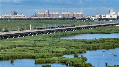 8月17日,复兴号动车组列车行驶在哈齐高铁线上(无人机照片)。记者从中国铁路哈尔滨局集团有限公司获悉,2025年8月17日,我国最北高寒高铁哈齐高铁开通运营十周年。十年来,哈齐高铁动车组累计安全运行超8189万公里,运送旅客突破1亿人次。(新华)
