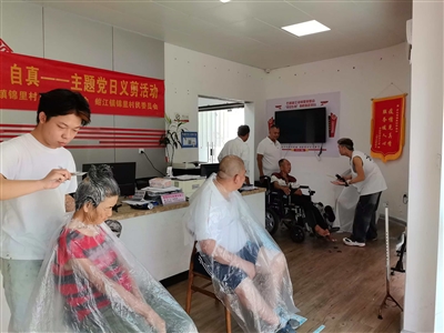 活动现场,在村网格员、党员志愿者的引导下,4名专业美发志愿者携带工具,耐心询问每位村民的发型需求,细致修剪、精心染发;一旁的党员志愿者则忙碌不停——有的引导村民有序排队,有的为等候的老人搬来板凳、递上温热的茶水,还不时与村民拉家常,了解大家的生活需求。