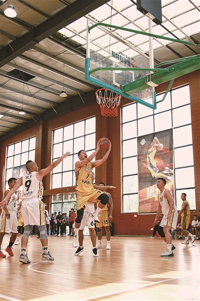 ▲石狮队(黄队)对战凯里队(石狮篮球队供图)