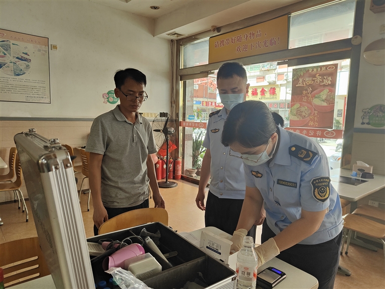 检查范围主要集中在肉制品销售量大的牛肉店、火锅店、烧烤店等,执法人员一方面核查履行索证索票和进货查验义务情况,要求餐饮服务单位对采购的肉制品、内脏等须妥善保存供货者营业执照、购货证明、合格证明等相关凭证;另一方面排查违法添加非食用物质和滥用食品添加剂的行为,对牛肉餐饮店销售的牛肉羹、牛肉丸等产品开展快速检测筛查,主要检测其是否含有硼砂硼酸,此次快速检测共计抽查10个样品,均未发现不合格。同时,执法人员还核验肉类食品标签标识,检查是否以调理肉制品冒充“原切肉”“鲜切肉”“纯肉”等违法违规行为,是否以鸡肉、鸭肉等假冒牛肉、羊肉制品等。