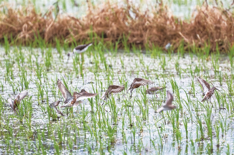 立秋过后,夏候鸟与冬候鸟在石狮湿地公园完成候鸟迁徙的新一轮交替:夏候鸟栗喉蜂虎雏鸟出巢,在石狮湿地公园练习捕猎,即将返回故乡;冬候鸟从北方远道而来,“做客”石狮湿地公园。作为冬候鸟“先头部队”的鸻鹬类候鸟陆续抵达,拉开了一年一度“候鸟南迁”的序幕。(记者 林恩炳 颜华杰)