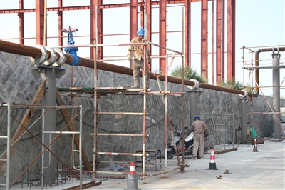 记者看到,现场的工人各司其职,对管道钢支架进行焊接,整个工作现场井然有序,有条不紊。“焊接质量直接关系到管道安全,容不得半点马虎。”一名安全员逐寸检查焊缝密实度,确保每一个环节都符合技术要求,保证项目的质量。