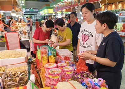 本报讯 闽南地区的七夕节,又称“七娘妈生”。每年这段时间,与之相关的民俗活动也愈发热闹起来。8月28日下午,记者在石狮市八卦街传统业态市场看到,不少市民穿梭于摊位间,精心选购糕点等民俗用品,让传统节日的仪式感愈发浓厚。(记者 陈嫣兰 郭雅霞)