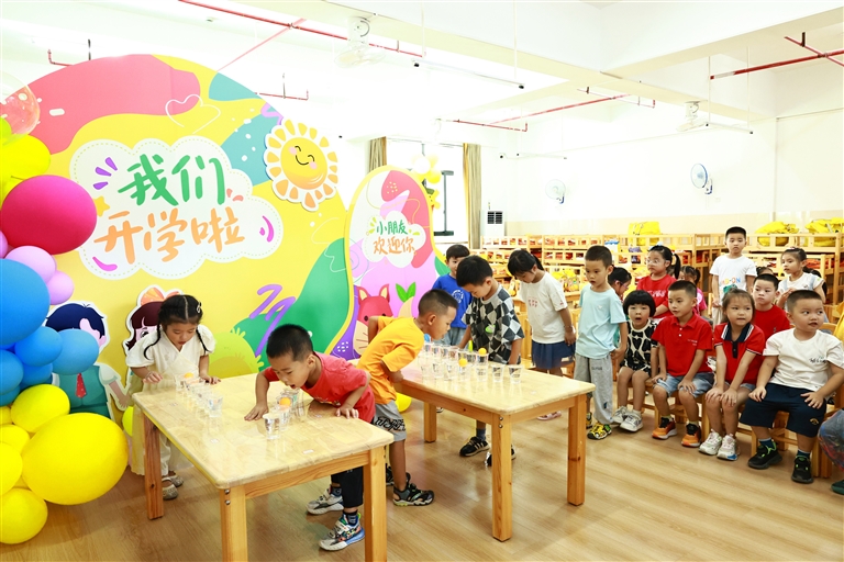 随后,班级里的趣味小游戏热闹开场,老师们准备了多种互动游戏,鼓励孩子们合作玩游戏、分享小道具,陌生感在游戏的快乐氛围里慢慢消散,友谊的小种子悄然萌芽。孩子们在欢声笑语中熟悉新园,也为这场充满温情的开学礼画上圆满句号。