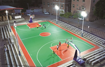 9月2日傍晚,记者在现场看到,改造后的球场焕然一新:靛蓝色的塑胶地面平整如镜,四组新型LED灯柱将场地照得通明,孩子们在新装的篮球架下奔跑投篮,欢笑声此起彼伏。正在打球的村民林先生感慨:“以前晚上打球光线暗,地面坑洼容易摔倒,现在既安全又舒适,大家运动热情更高了!”鸿山镇相关负责人表示,未来将持续完善体育设施建设,并定期组织篮球联赛、健身培训等活动,让“家门口的球场”真正成为群众幸福生活的载体。